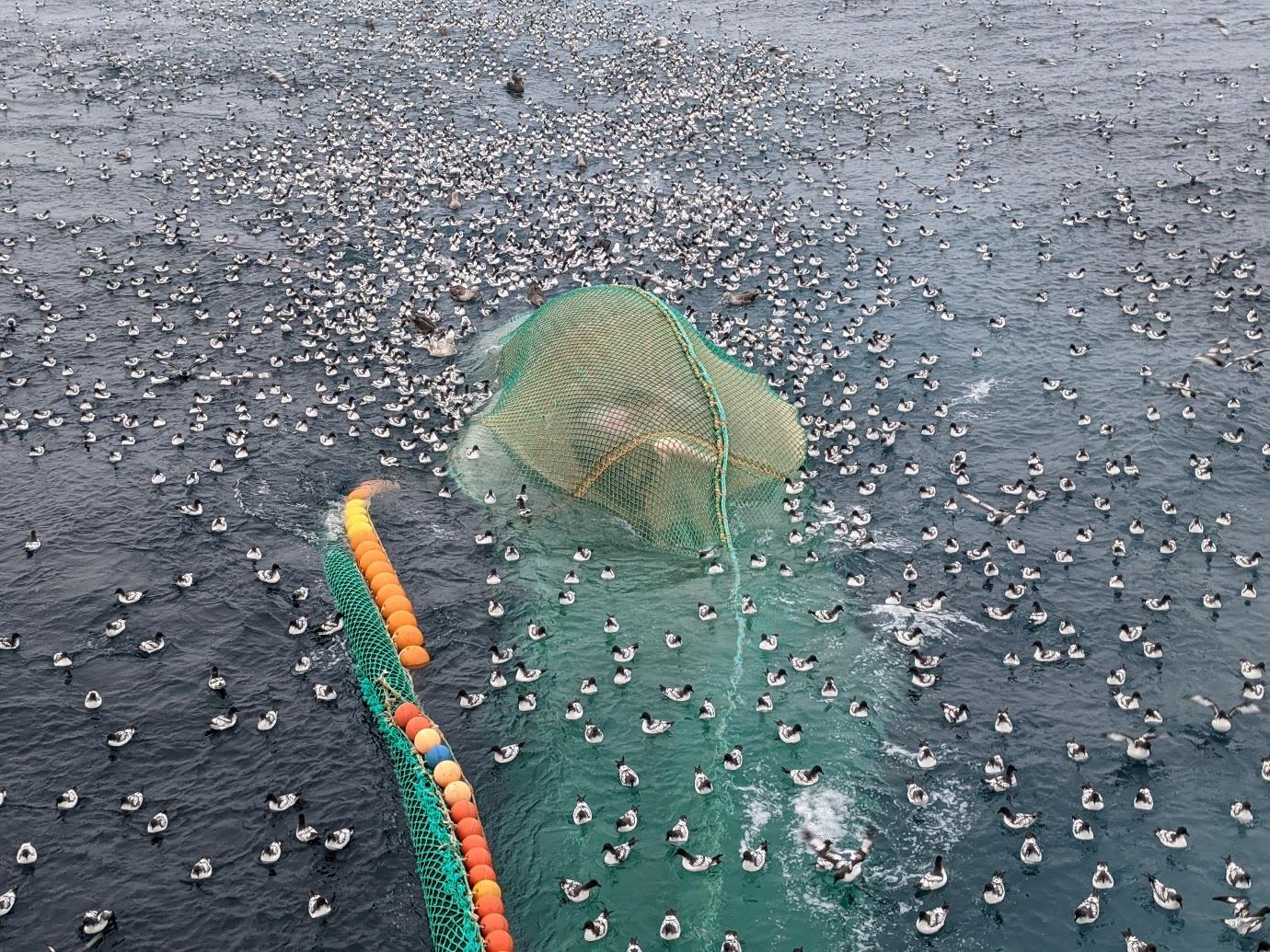 In addition, every year, across the industry, dozens of seabirds collide with the trawlers’ metal cables, sometimes suffering deadly injuries.